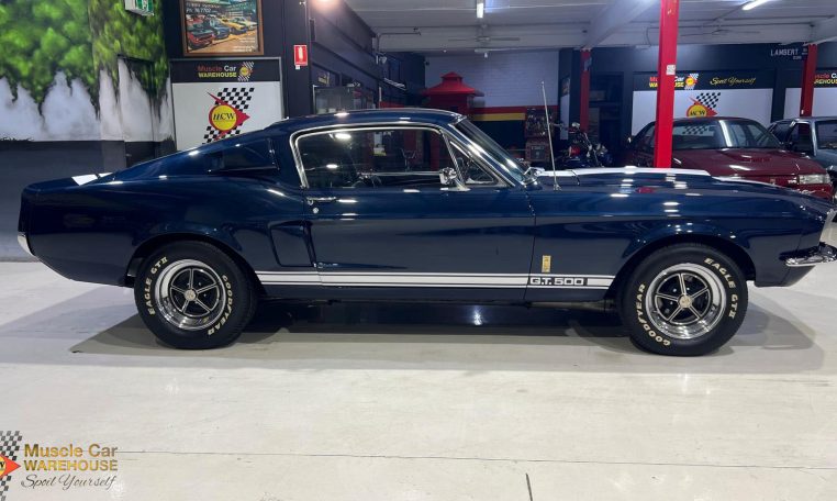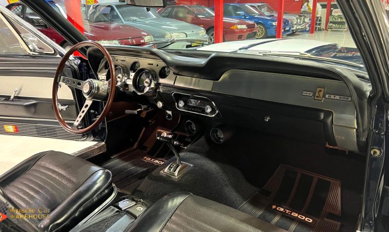 Mention the name “Shelby” just about anywhere in the world to just about any car guy and they will know what you’re referring to. Carroll Shelby an American automotive designer, racing driver and entrepreneur. Shelby was involved with the AC Cobra and the Mustang for the Ford Motor Company. Shelby’s early racing successes led to a joint effort of Ford and Shelby-American to produce the Mustang-based Shelby GT350, starting in 1965, then the Shelby GT500, starting in 1967. Shelby produced those cars through 1968, then subsequent cars with the Shelby GT brand were produced in-house by Ford. This Shelby, that started its life as a GT350 has at some stage of its life been cloned into a GT500 and not just externally. Beneath the hood is a monstrous 427 “Side Oiler” cubic inch big block (cross bolt block) with twin carbs sitting on top. Behind that is a C6 auto transmission with a high stall convertor and lastly nothing other than a 9” diff with 4.11 gear ratios. The Shelby is believed to have been in Australia since the 90s and given a partial restoration while still retaining the factory interior. Still sporting its original and desirable colour of Nightmist Blue and riding on Shelby Magstar rims. Do not miss out on this opportunity to secure a world-renowned muscle car. Please contact one of our friendly staff to make an appointment to view this car at our Kogarah showroom.
