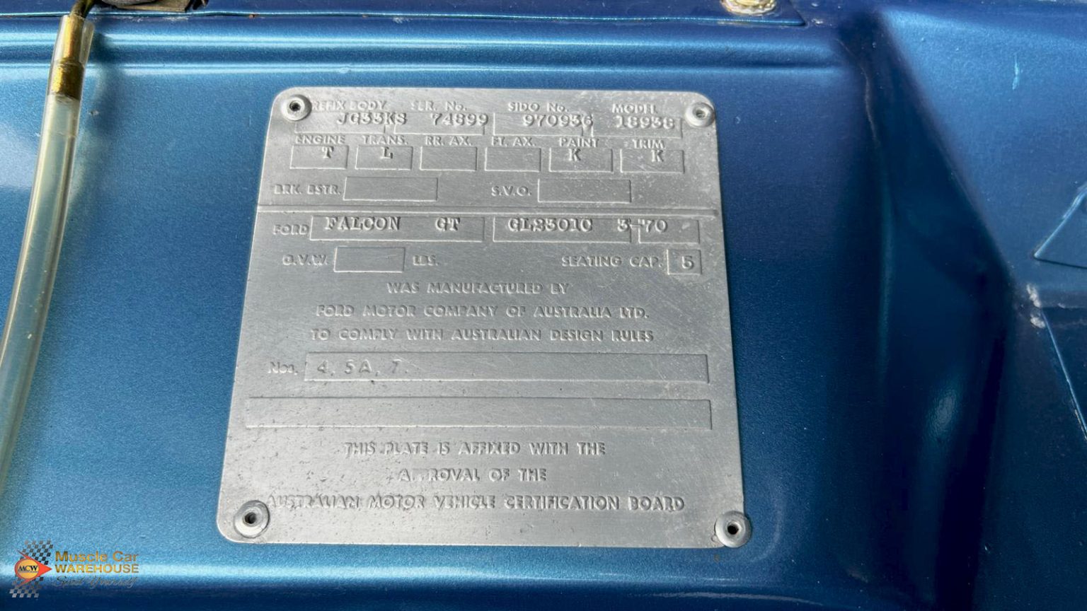 Now proudly for sale at Muscle Car Warehouse is this 1970 Ford XW Falcon GT. Originally delivered to Central Motors (Reg Wright Ford) in Redcliffe, Queensland on the 7th of April 1970. Built in one of the best colours offered in the XW range, Starlight Blue together with Dark Saddle interior. Adding desirability is the fact the car is fitted with its matching number Cleveland engine and a factory fitted Top Loader manual transmission. One of five built with these exact specifications. Sitting on nothing other than five slot wheels. Although an older restoration the car still presents beautifully because of minimal use by the current (fourth) owner of approximately 18 years. Full history is known on the car, which is included in the sale as well as a Ford verification letter, ACCHS report, some receipts, owner’s manual and old photos. Seldomly do XW GTs like this become available so do not miss this opportunity. Please contact one of our friendly staff to make an appointment to view this car.